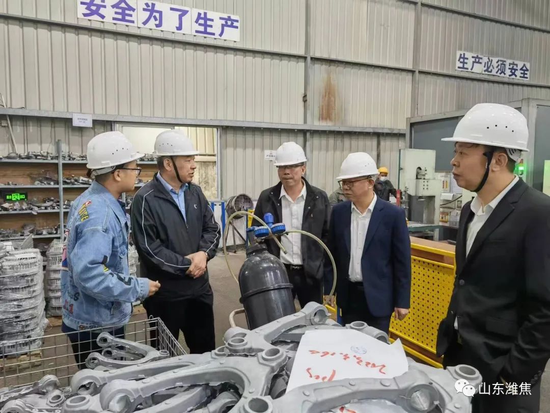 在參觀考察中,劉良玉認真聽取了勵基公司的發(fā)展歷程、市場布局、技術(shù)創(chuàng)新、擺臂生產(chǎn)及市場推廣等方面情況。隨后,雙方就低固相模鍛汽車擺臂項目生產(chǎn)經(jīng)營模式及未來合作發(fā)展等方面深入座談交流。